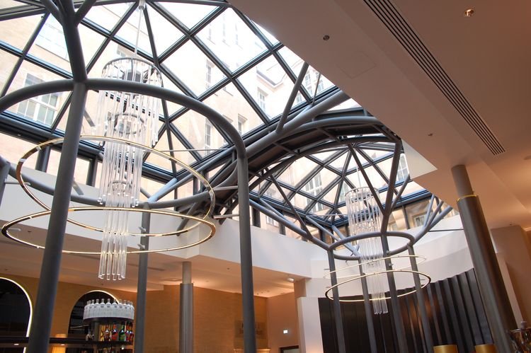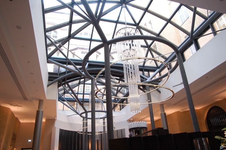 Steigenberger Grandhotel in der Stadt Leipzig. Überdachung mit 2 Kuppeln.
